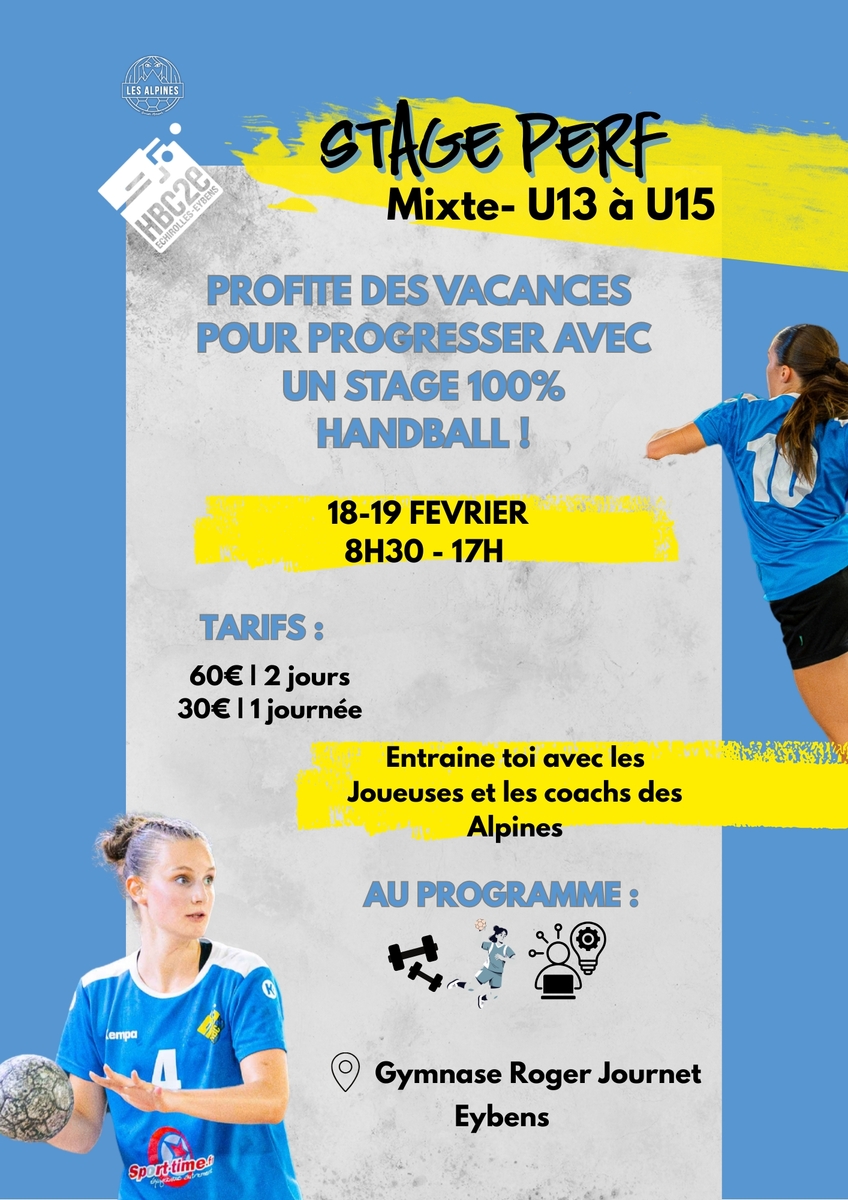 Encadré par les coachs des Alpines, ce stage perf' te permettra d'améliorer ton jeu, de t'entrainer sérieusement et de passer deux jours entre passionés !