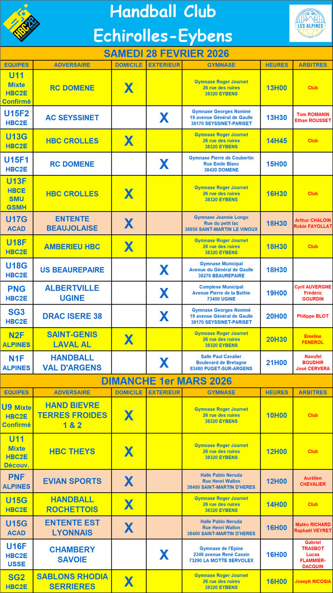 Rencontres du samedi 28 février et du dimanche 1er mars 2026